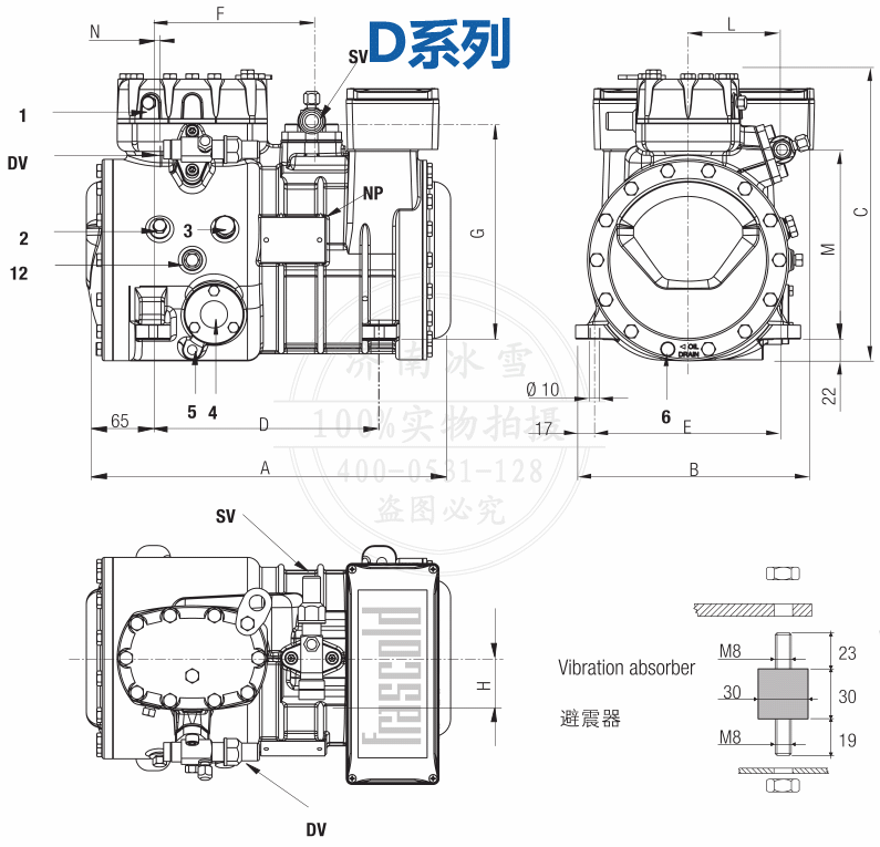 (7)包含截止閥、冷凍油和橡膠減震墊的凈重